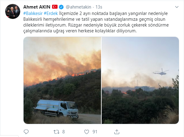 Geçtiğimiz gün 18:00 sularında Kapıdağ Yarımadasında bulunan Tatlısu mahallesinde sebebi bilinmeyen bir şekilde yangın çıktı. Yangını gören mahalle halkı orman yangınları mücadele ekibine ulaştı. Orman mücadele ekipleri yangına müdahale için 2 helikopter, 15 arozöz ile birlikte 50 personel görevlendirildi.