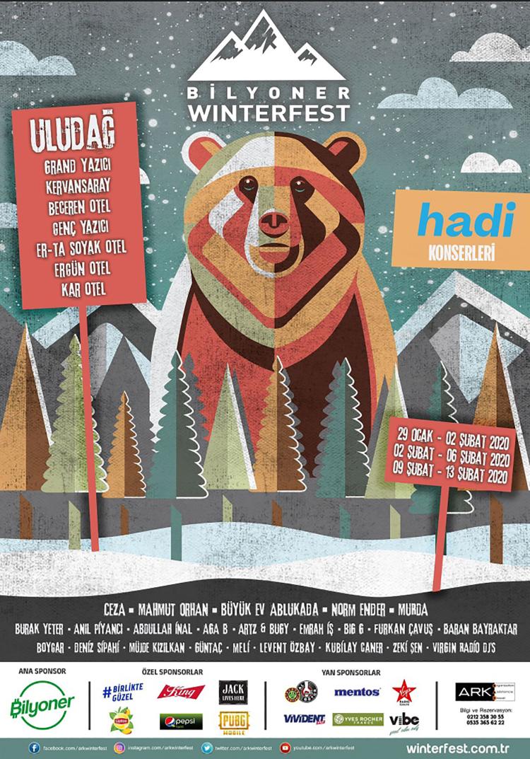 Geçtiğimiz senelerde dünyadan ve Türkiye'den Ajda Pekkan, Serdar Ortaç, Demet Akalın, Hande Yener, Hadise, David Vendeta gibi isimleri ağırlayan Bilyoner Winterfest bu sene 29 Ocak- 13 Şubat tarihlerinde Uludağ'da gerçekleşiyor. “Hadi Gençlik Konserleri” kapsamında Ceza, Mahmut Orhan, Norm Ender, Anıl Piyancı, Büyük Ev Ablukada, Murda, Burak Yeter, Arem & Arman, Baran Bayraktar, bu sene festivalde sahne alacak olan isimler.