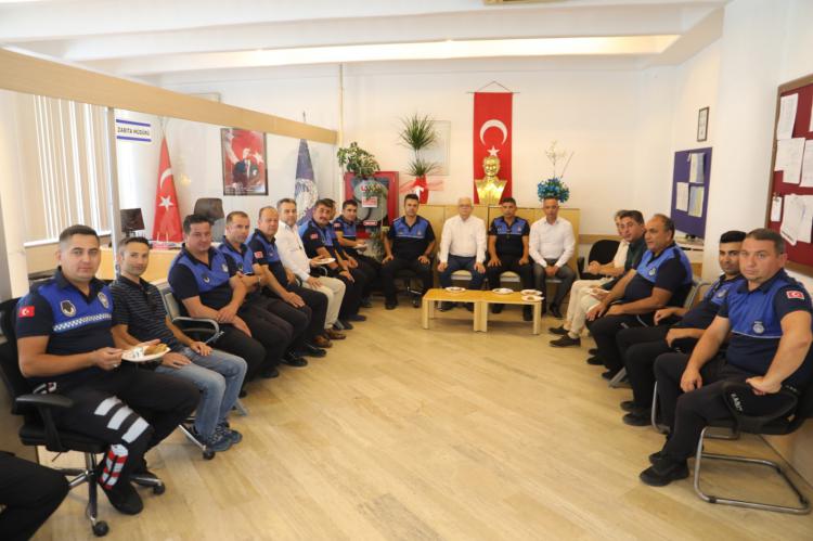 Belediye hizmet binasında Zabıta Müdürlüğü'nde gerçekleştirilen ziyarette Başkan Deveciler, Belediye Başkan Yardımcıları Murat Yazgan, Oktay Erbalaban ve Tamer Midilli ile zabıta personeli hep beraber pasta keserek Zabıta Haftasını kutladı.